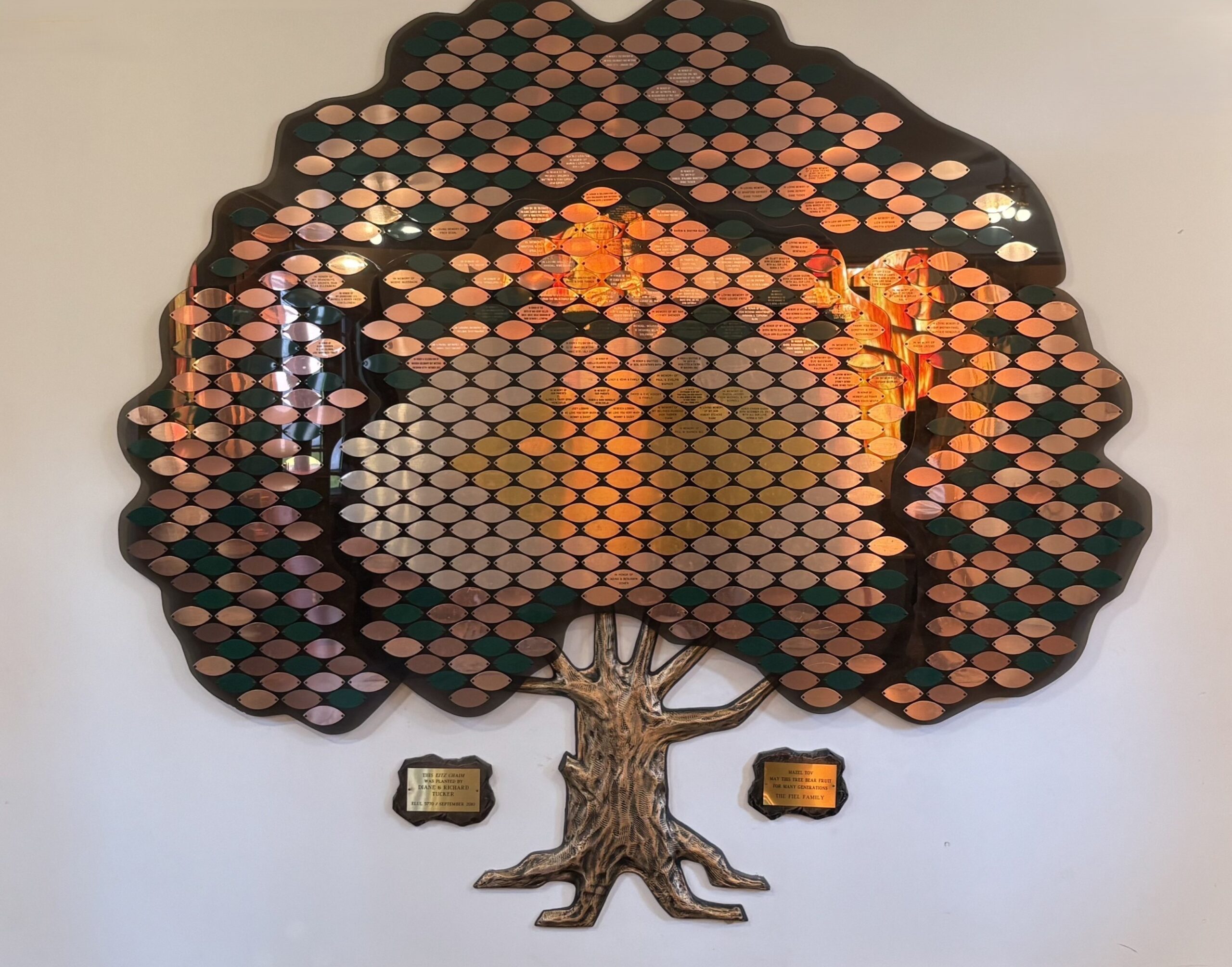 Our synagogue offers many ways in which to memorialize a departed loved one or to honor family and friends from the personalized dedication of prayer books, to sponsorship of stained glass windows, to adornments for our Torahs. But we are especially grateful to have now, on display in our main foyer, a magnificent Tree of Life, filled with hundreds of metallic leaves, upon which we can engrave the names of those you might wish to honor, or to commemorate a special occasion in your life, and which will remain as a continual and permanent reminder of the people or occasion whose importance is so meaningful to you and to our Shul. You will also be supporting Historic Congregation B’nai Abraham through your generosity.